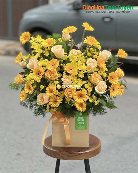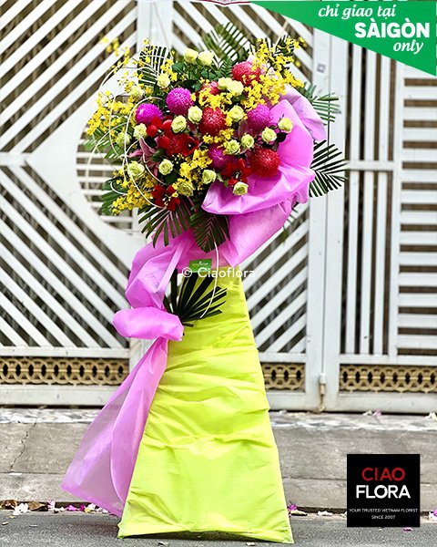Lưu ý: Mẫu này được áp dụng tại Sài Gòn (nếu thực hiện tại các tỉnh khác, xin liên hệ với chúng tôi để được xác nhận) và đặt hàng trước 24h. Quý khách từ hải ngoại có thể dễ dàng đặt gửi hoa về Việt Nam và sử dụng thẻ tín dụng của mình để thanh toán.