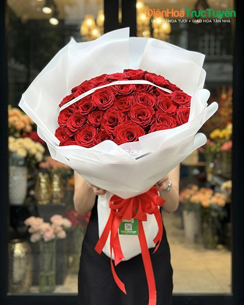 Trao gửi chân tình theo phong cách hiện đại. Đặt bó hoa hồng đỏ sang trọng này tại dienhoatructuyen.vn ngay hôm nay.