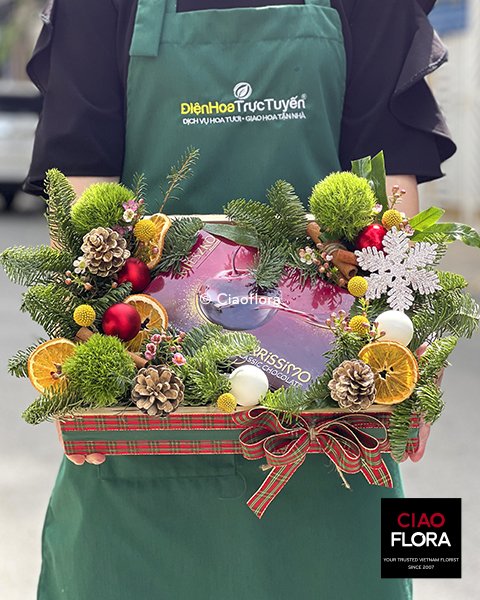 Sản phẩm được thiết kế dành riêng cho dịp Noel, với các loại hoa lá và đồ trang trí Giáng Sinh. Một món quà thật dễ thương và ý nghĩa, sẽ làm ấm lòng bất cứ người nhận nào trong mùa đông lạnh giá.