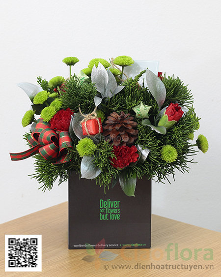Sản phẩm được thiết kế dành riêng cho dịp Noel, với các loại hoa lá và đồ trang trí Giáng Sinh. Một món quà thật dễ thương và ý nghĩa, sẽ làm ấm lòng bất cứ người nhận nào trong mùa đông lạnh giá.