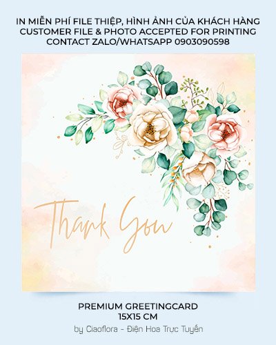 Thông thường, tất cả các đơn hàng hoa tươi đều được tặng kèm một tấm thiệp miễn phí để ghi thông điệp của quý khách gửi đến người nhận. Những tấm thiệp này thường do Điện Hoa Trực Tuyến chủ động lựa chọn tùy theo từng nội dung thông điệp.